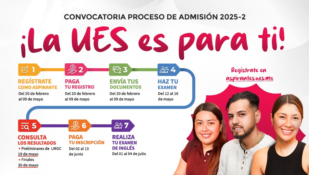 Todos los detalles de la convocatoria, la oferta educativa completa y fechas a tomar en cuenta, pueden consultarse en el portal aspirantes.ues.mx.