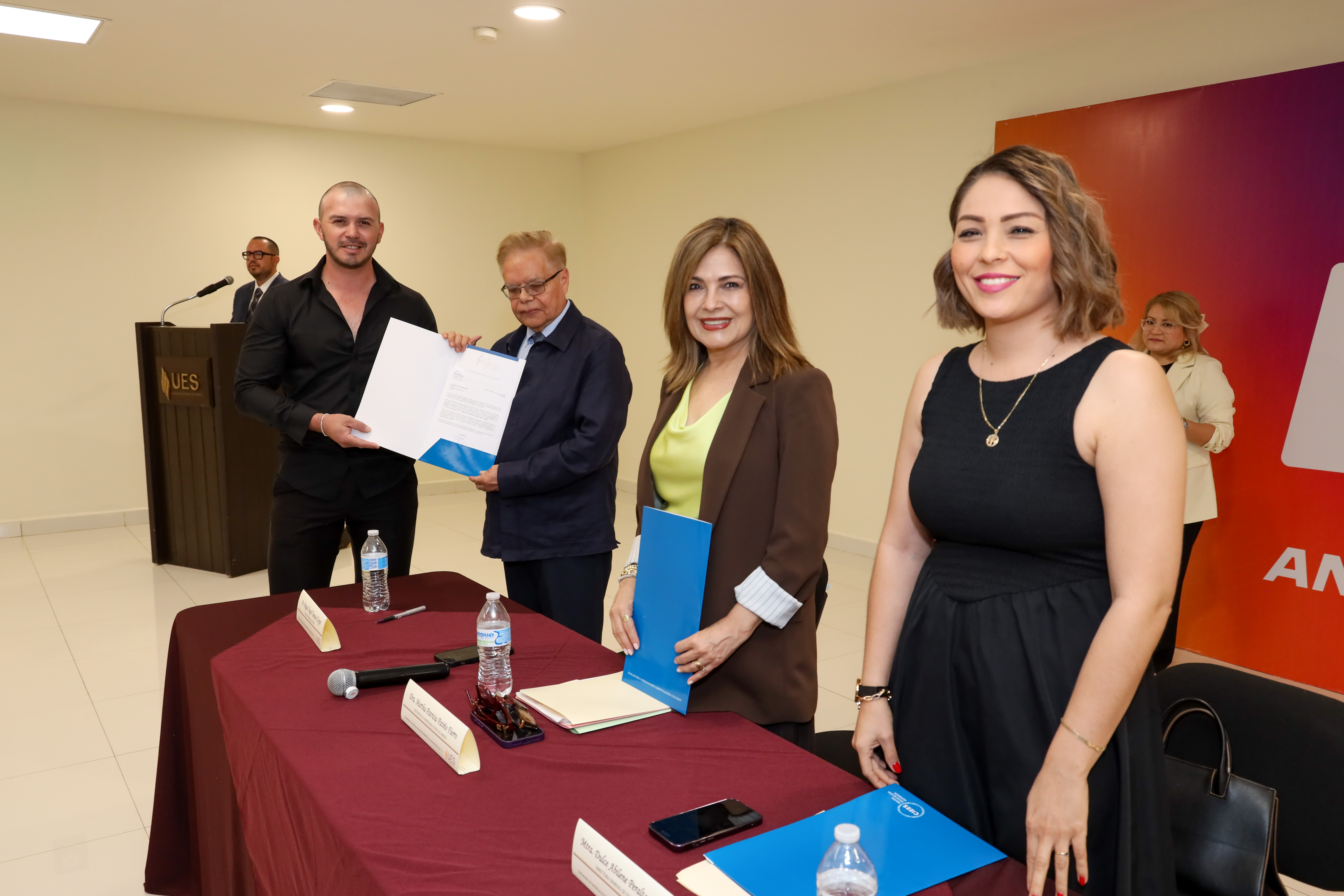 En representación del secretario de Educación y Cultura, Froylán Gámez Gamboa, Dulce Abilene Peralta Bracamonte reconoció que estas acreditaciones reflejan el esfuerzo de la UES por garantizar una educación de calidad y orientada a la mejora continua.