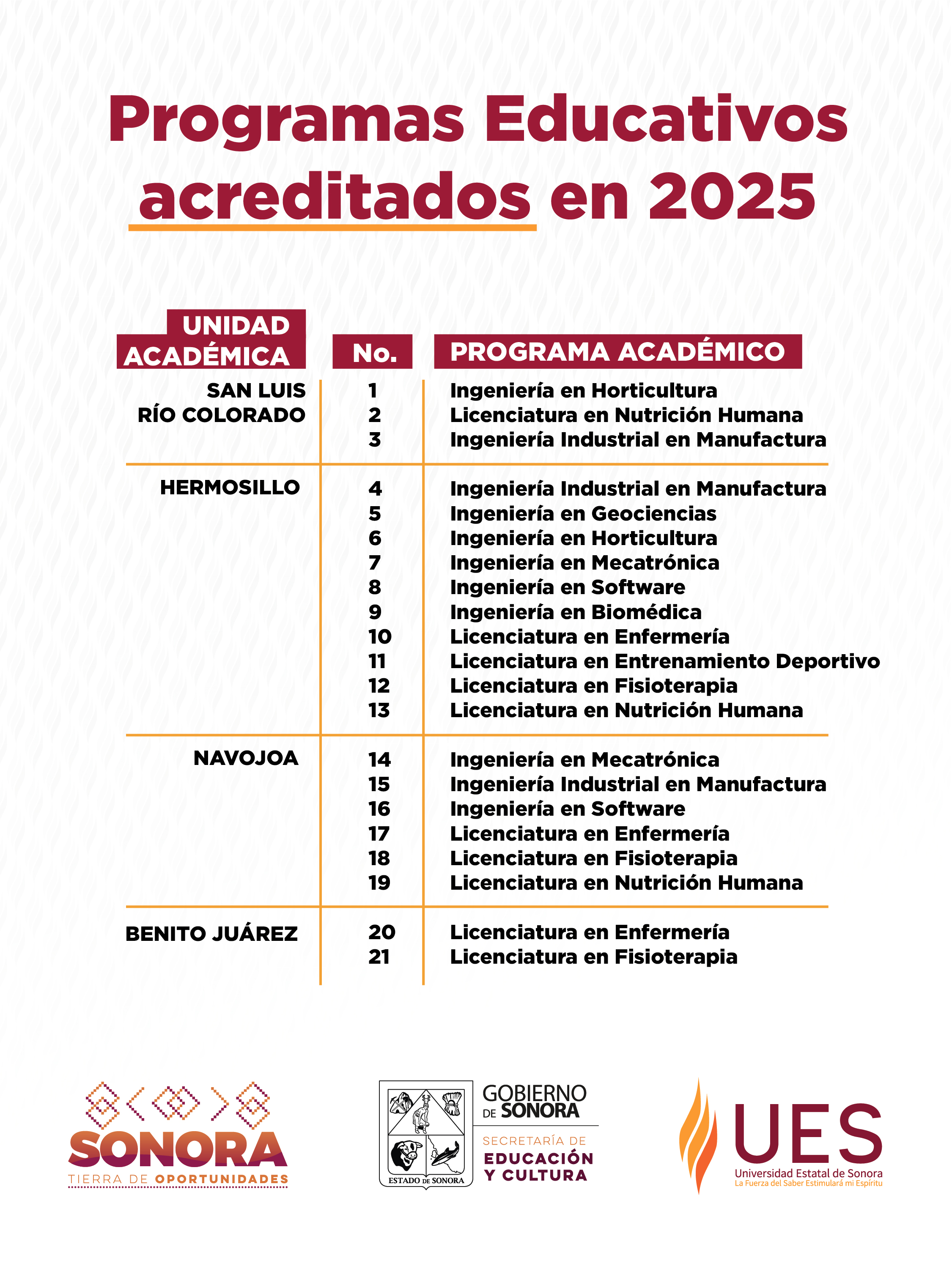 Hermosillo, Sonora; 23 de marzo de 2026.- La Universidad Estatal de Sonora (UES) concretó la acreditación y reacreditación simultánea de 21 programas educativos por los Comités Interinstitucionales para la Evaluación de la Educación Superior (CIEES), la cifra más alta de procesos de evaluación y acreditación alcanzada por la institución en un solo año.