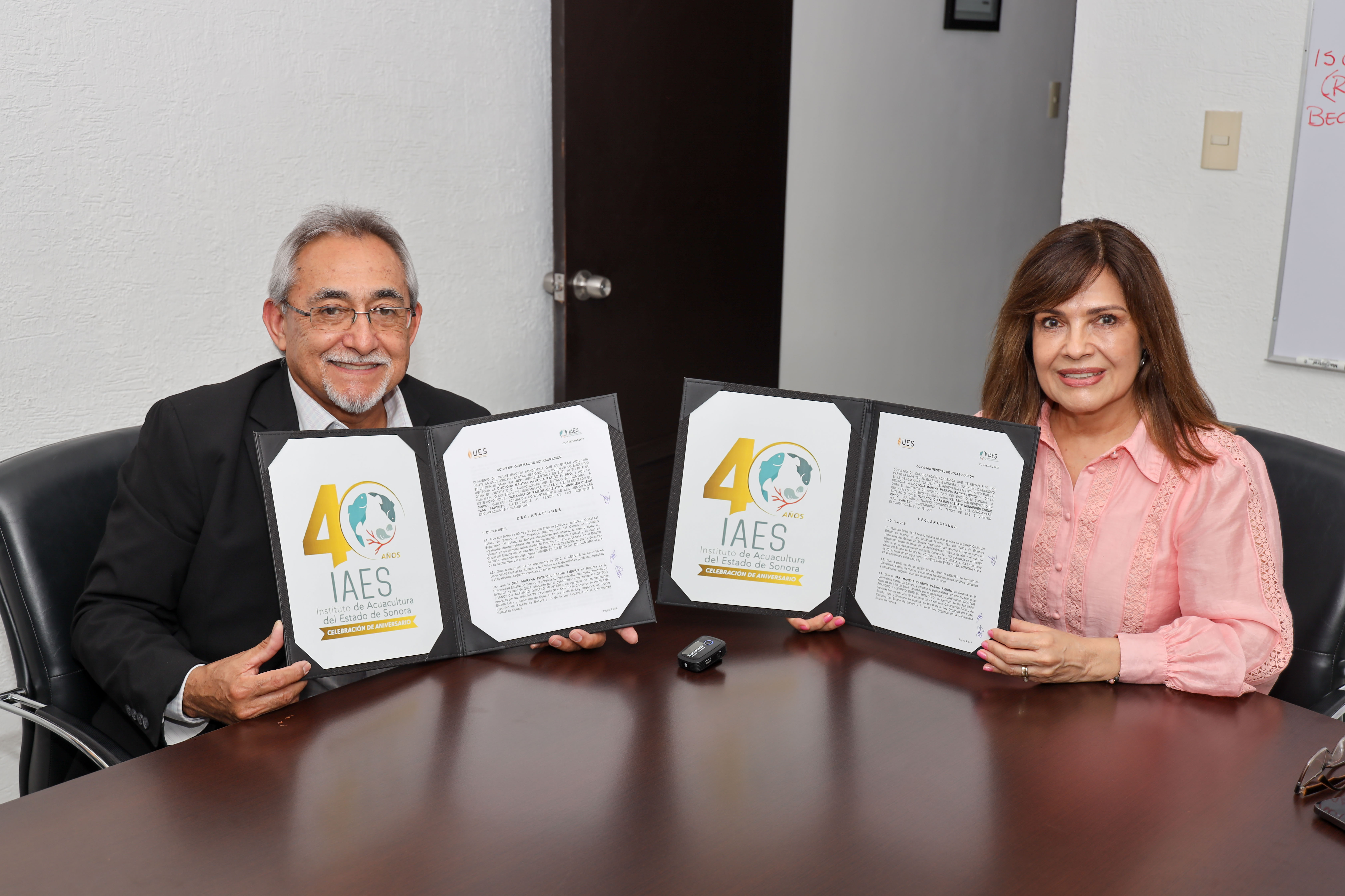 Hermosillo, Sonora; 10 de abril de 2025.- Con el firme propósito de fortalecer la colaboración entre la academia, el sector productivo y el Gobierno del Estado, la Universidad Estatal de Sonora (UES) y el Instituto de Acuacultura del Estado de Sonora (IAES) firmaron un convenio que impulsará proyectos estratégicos para el desarrollo de la industria acuícola y de otras especies marinas en la región.