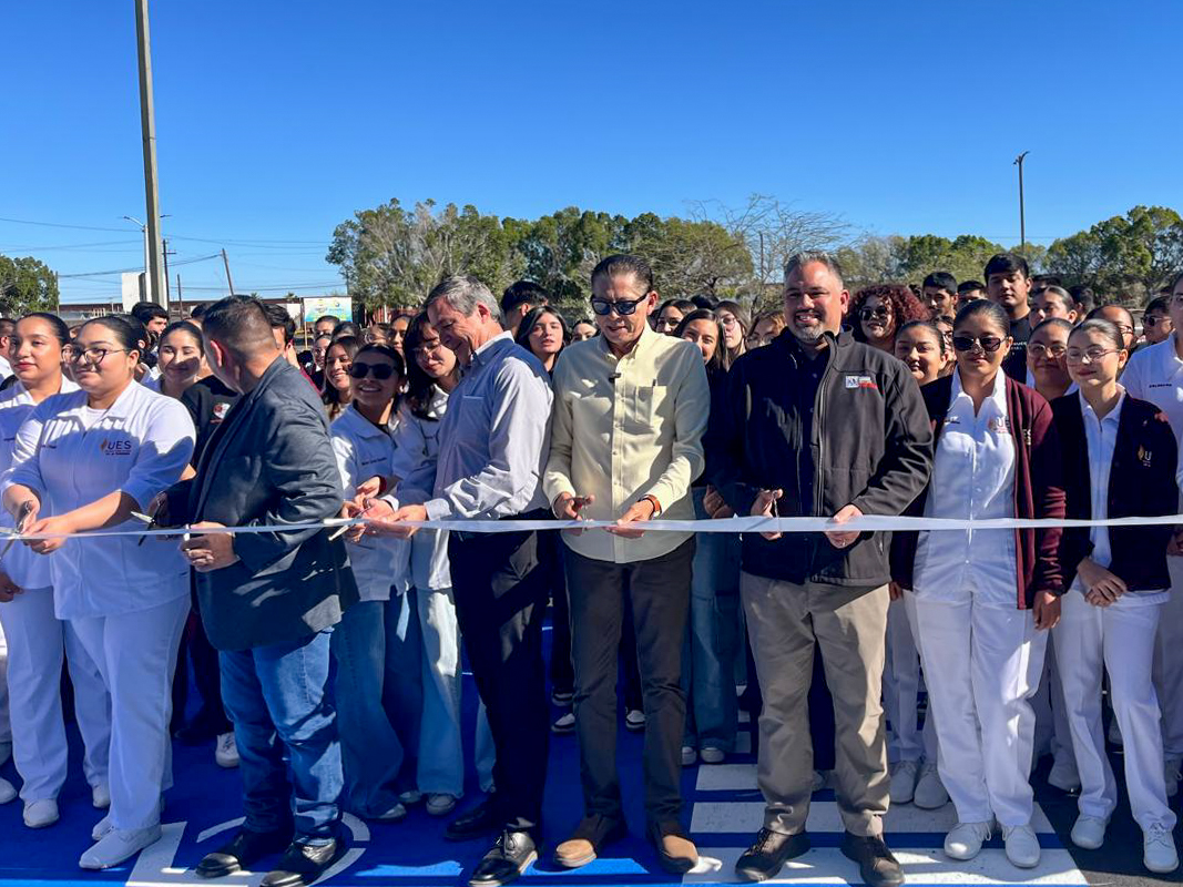 San Luis Río Colorado, Sonora; 16 de marzo de 2026.- Más de dos mil estudiantes y 350 trabajadores de la Universidad Estatal de Sonora (UES), Unidad Académica San Luis Río Colorado, cuentan con un estacionamiento más seguro, ordenado y funcional, tras la inauguración de la obra de recarpeteo en este espacio universitario.