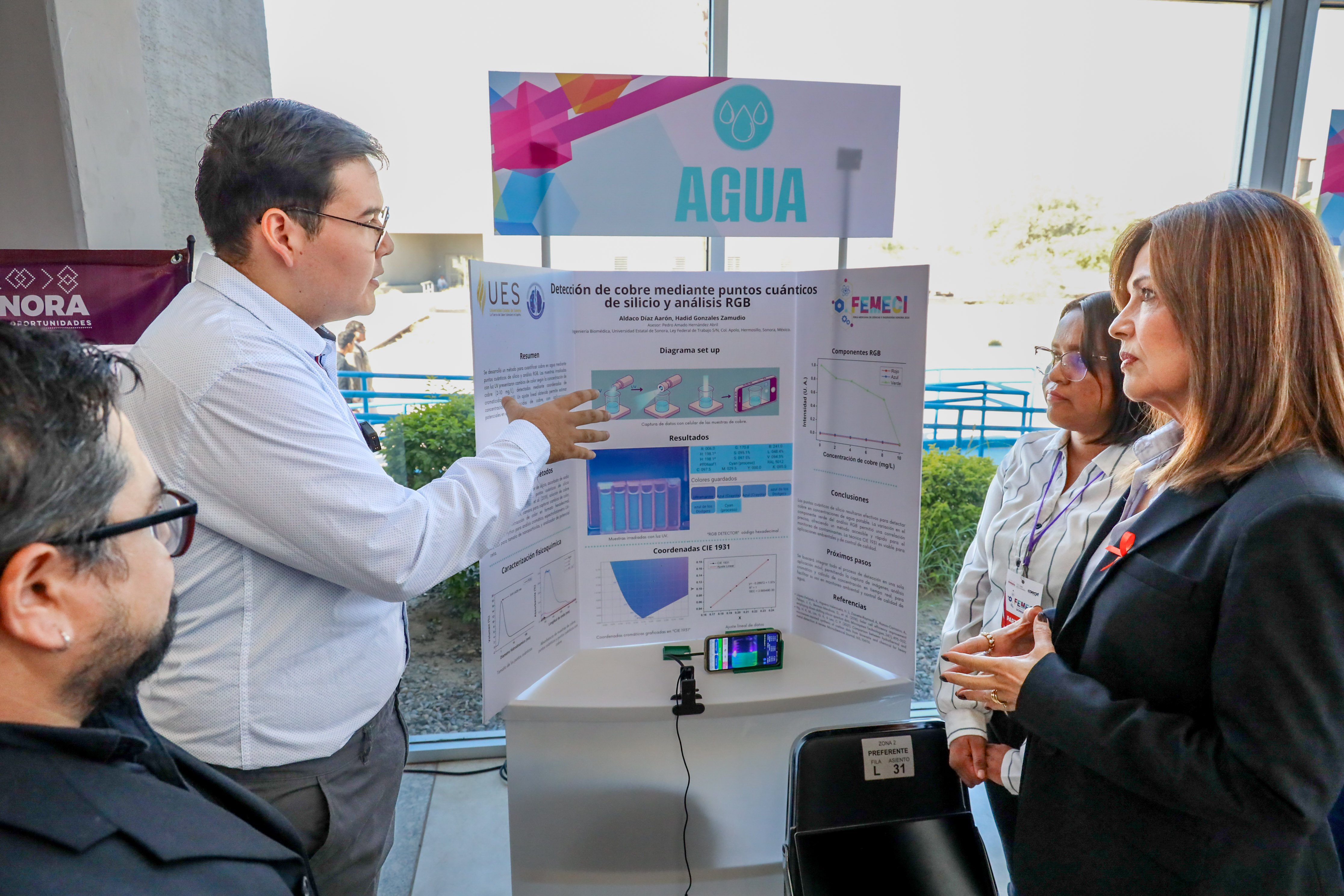 Mientras que en la categoría Agua, los estudiantes de la ingeniería en Biomédica, de UES Hermosillo, Aarón Aldaco Díaz y Hadid González Zamudio, obtuvieron el tercer lugar de la competencia de ciencia, con el proyecto “Detección de Cobre mediante puntos cuánticos de silicio y análisis RGB”.