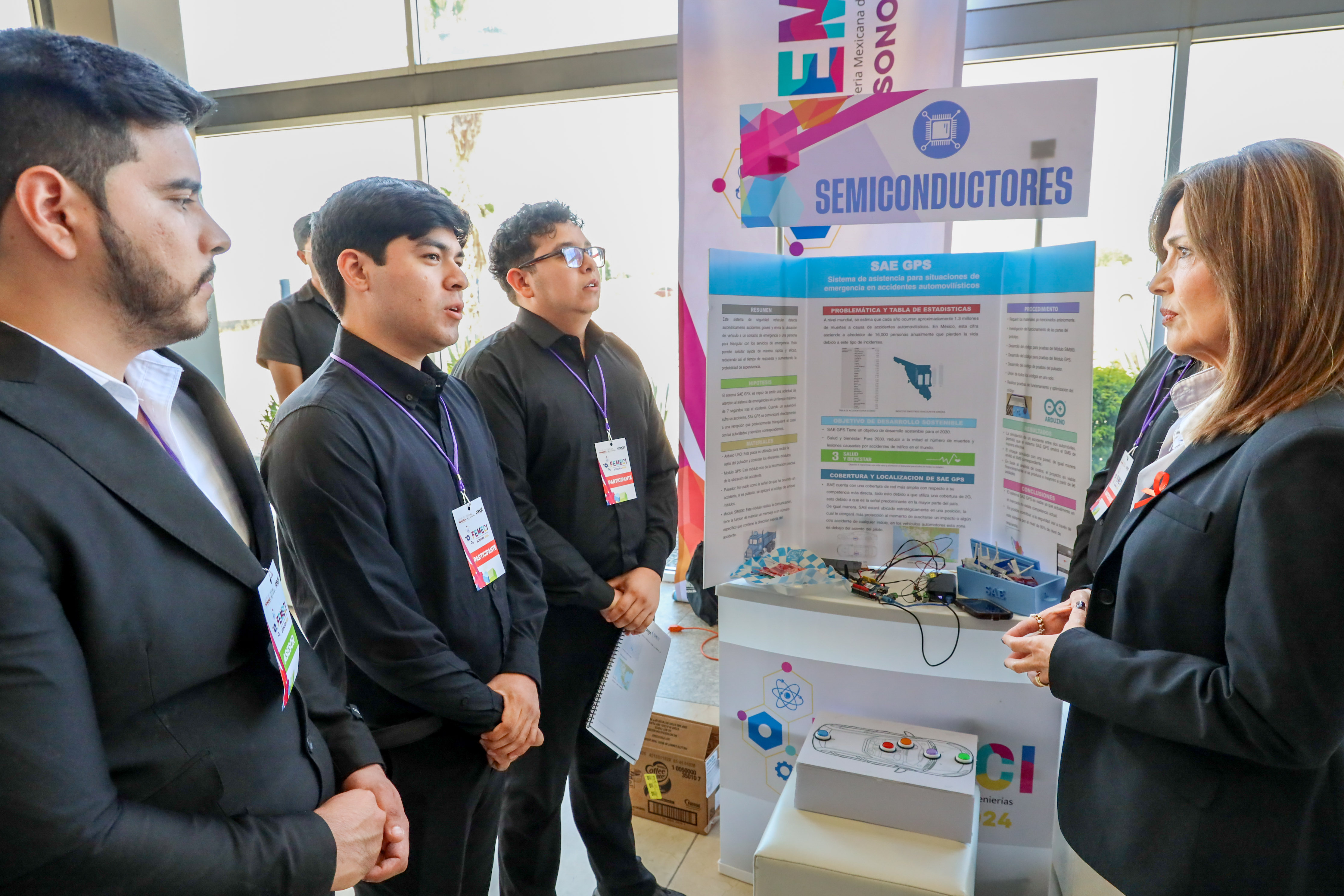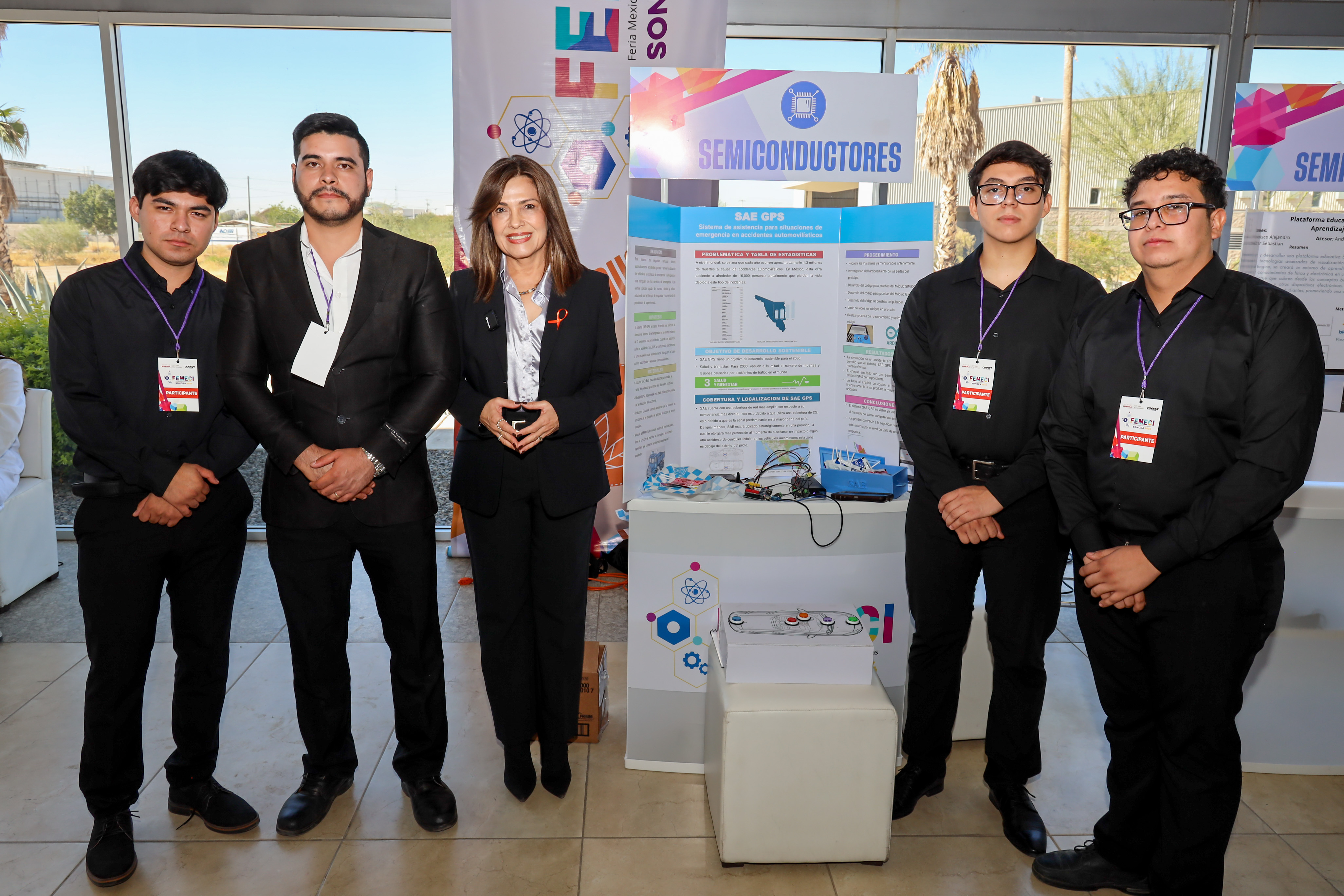 El primer lugar en la categoría Semiconductores lo obtuvo el proyecto “SAE GPS”, sistema de asistencia para situaciones de emergencia en accidentes automovilísticos, de los estudiantes de la ingeniería en Mecatrónica, de UES Navojoa, Cristian Esteban Ruiz Zúñiga, José Julián Gamboa Márquez, Ramón Emmanuel Castillo Félix y Víctor Manuel Zamorano Alvarado, asesorados por el maestro Rigoberto Alonso Pérez Cruz.