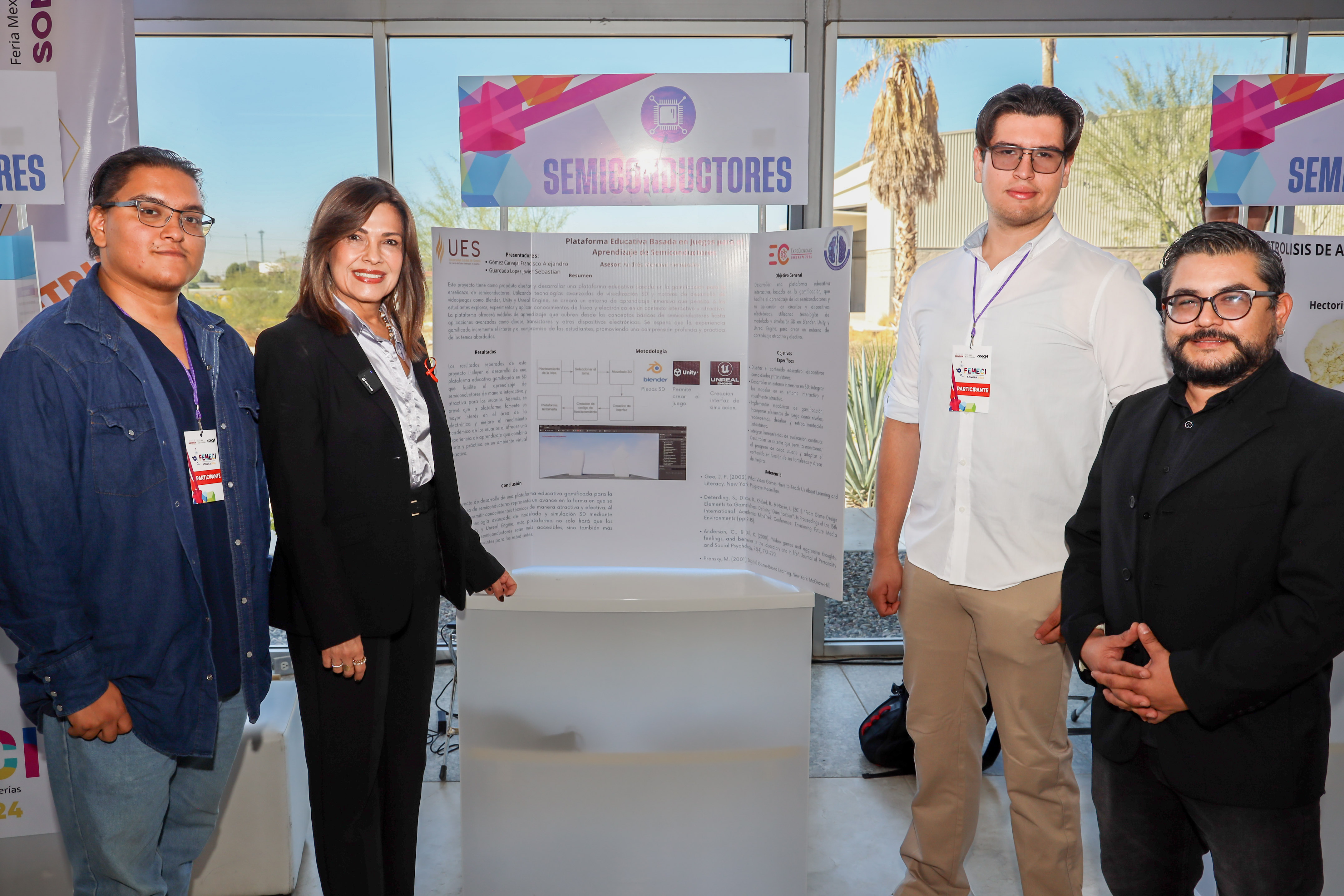 Hermosillo, Sonora; 16 de noviembre de 2024.- Con un primero y segundo lugar en la categoría Semiconductores, además del tercer lugar en la categoría Agua, alumnado de la Universidad Estatal de Sonora (UES) tuvo una destacada participación en la Feria Mexicana de Ciencia e Ingenierías (Femeci).