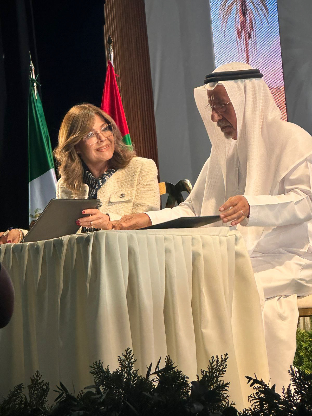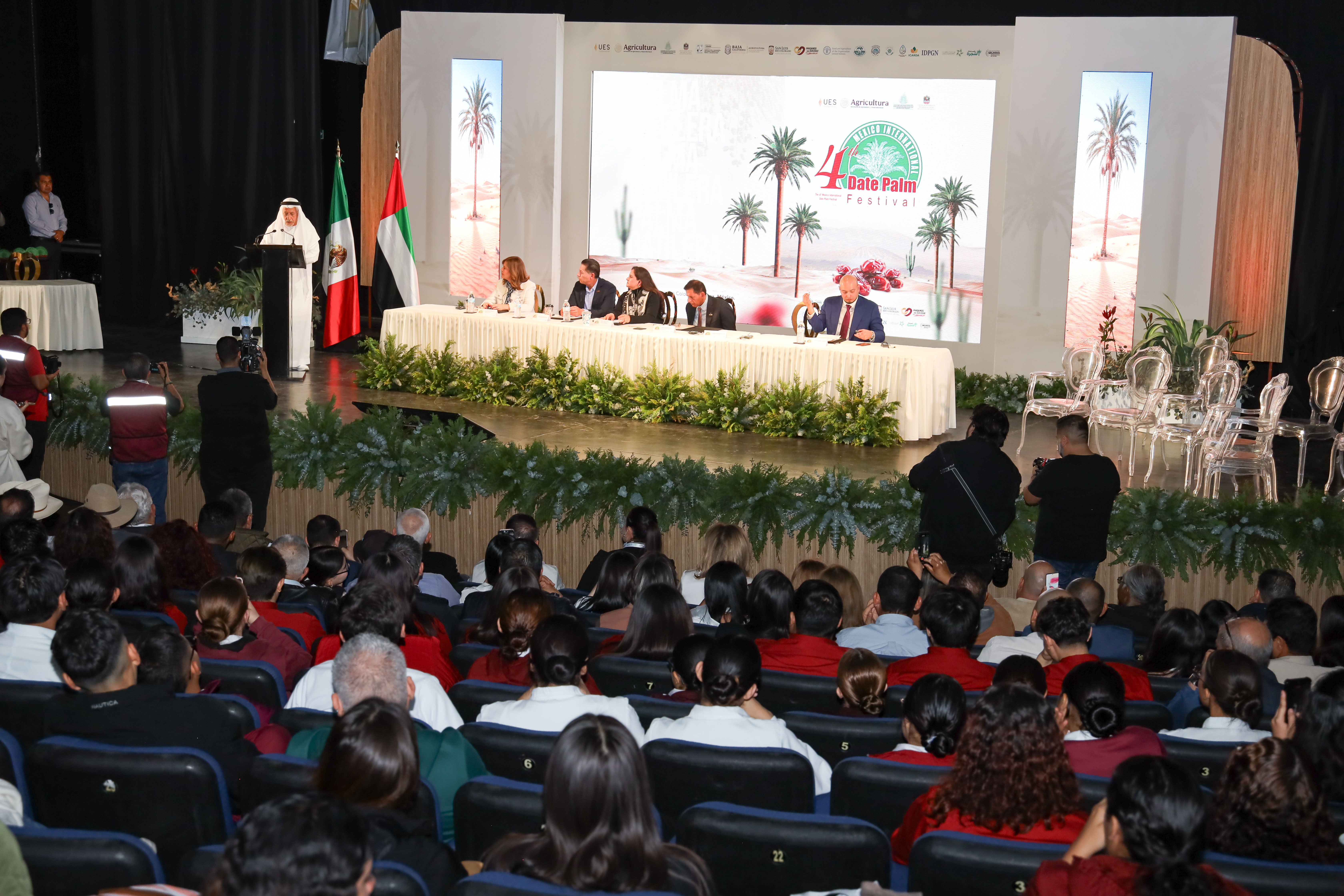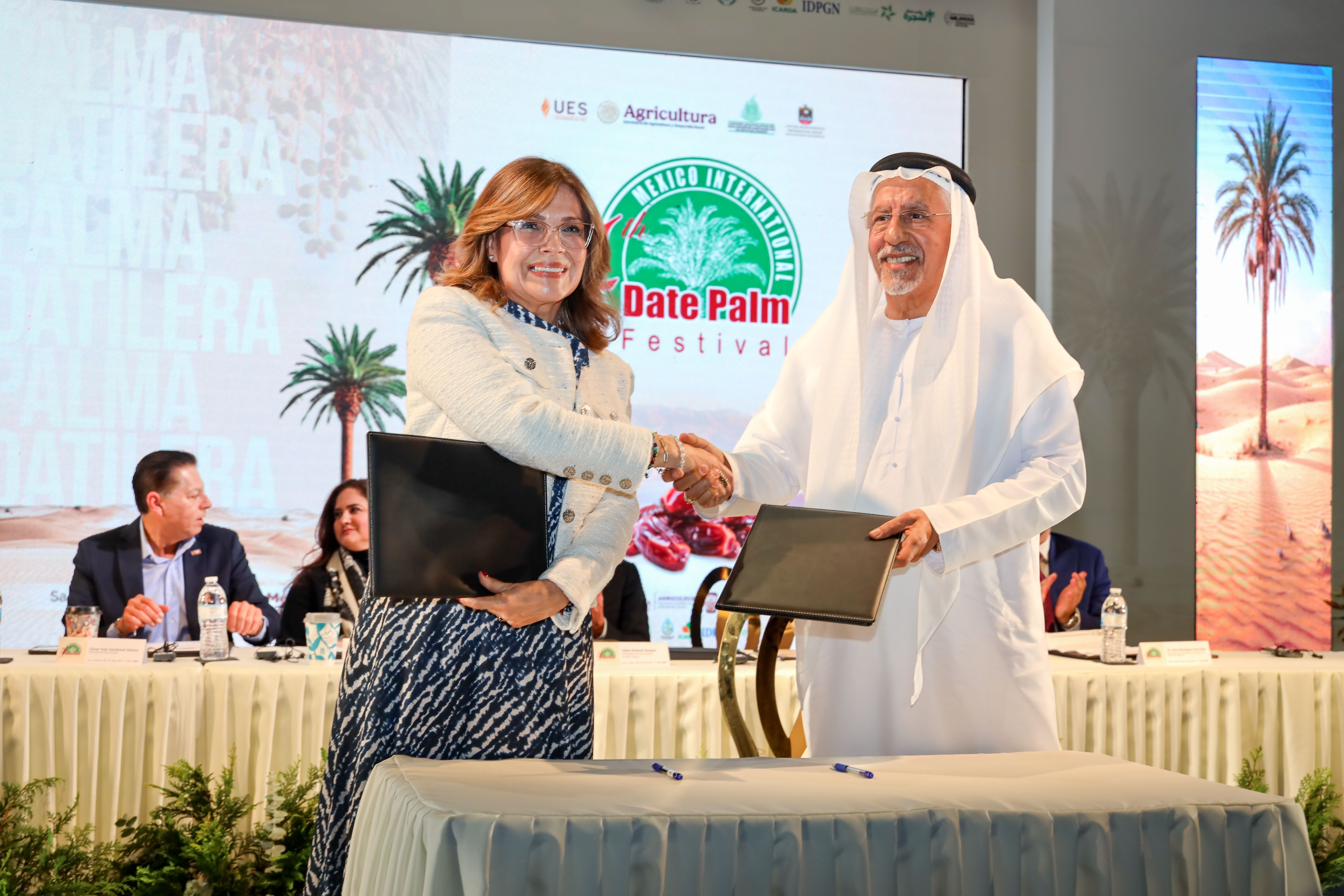 En el acto inaugural se firmó el acuerdo de entendimiento entre la Universidad Estatal de Sonora (UES) y el Premio Internacional Khalifa para la Palma Datilera y la Innovación Agrícola, con el fin de ampliar la colaboración en investigación aplicada, movilidad científica, formación académica y transferencia de tecnología, especialmente en agricultura resiliente y manejo sostenible del cultivo de dátil.
