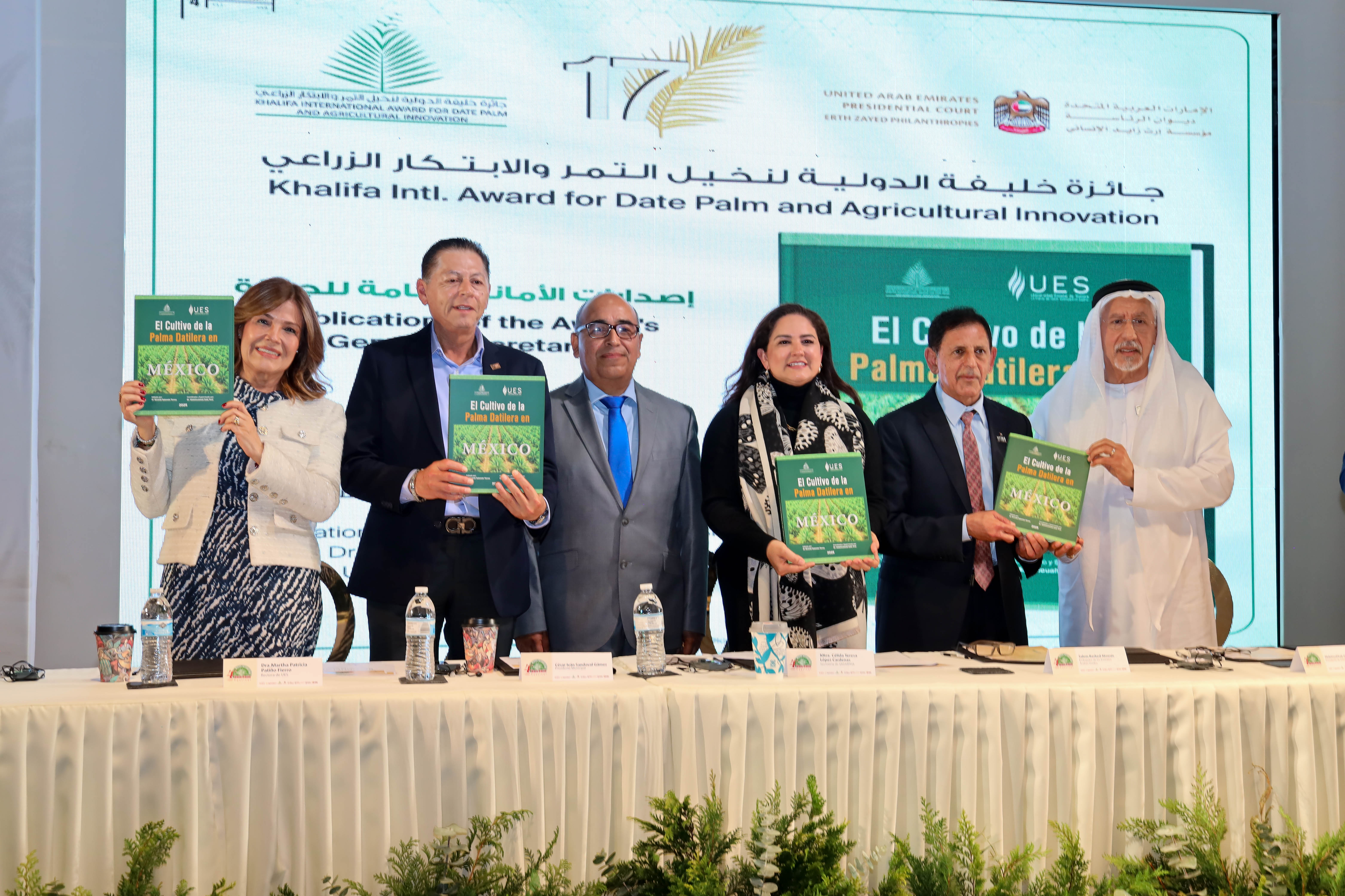 Asimismo, se presentó el libro El Cultivo de la Palma Datilera en México, elaborado por el investigador Ricardo Salomón Torres y especialistas de la UES, obra que aportará información estratégica para productores, estudiantes e investigadores. La entrega simbólica del ejemplar estuvo a cargo de representantes del KIADPAI y de la delegación internacional.